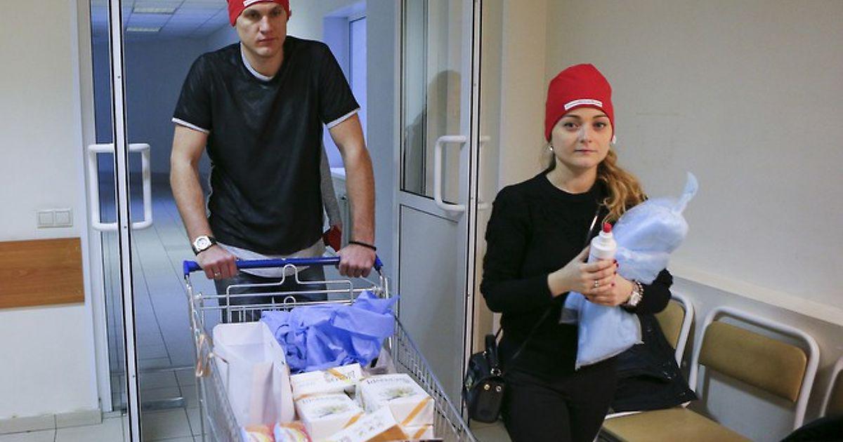 Мы встречаемся с Артёмом и активистами Фонда борьбы с лейкемией у лифта, который поднимет нас на этаж химиотерапии. Ребров в отличном настроении, улыбчив и весел. С телегой, набитой журналами, вещами, печеньем и зефиром.
