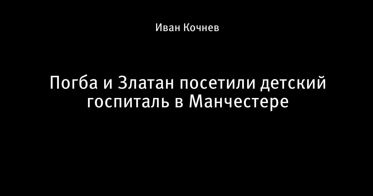 23 декабря 2016, 18:17 Погба и Златан посетили детский госпиталь в Манчестере Автор Иван Кочнев Этот пост опубликован в блоге на Трибуне Sports.ru. Присоединяйтесь к крупнейшему сообществу спортивных болельщиков! Другие посты блога Телевизор 3.0 видео Поль Погба Манчестер Юнайтед Златан Ибрагимович