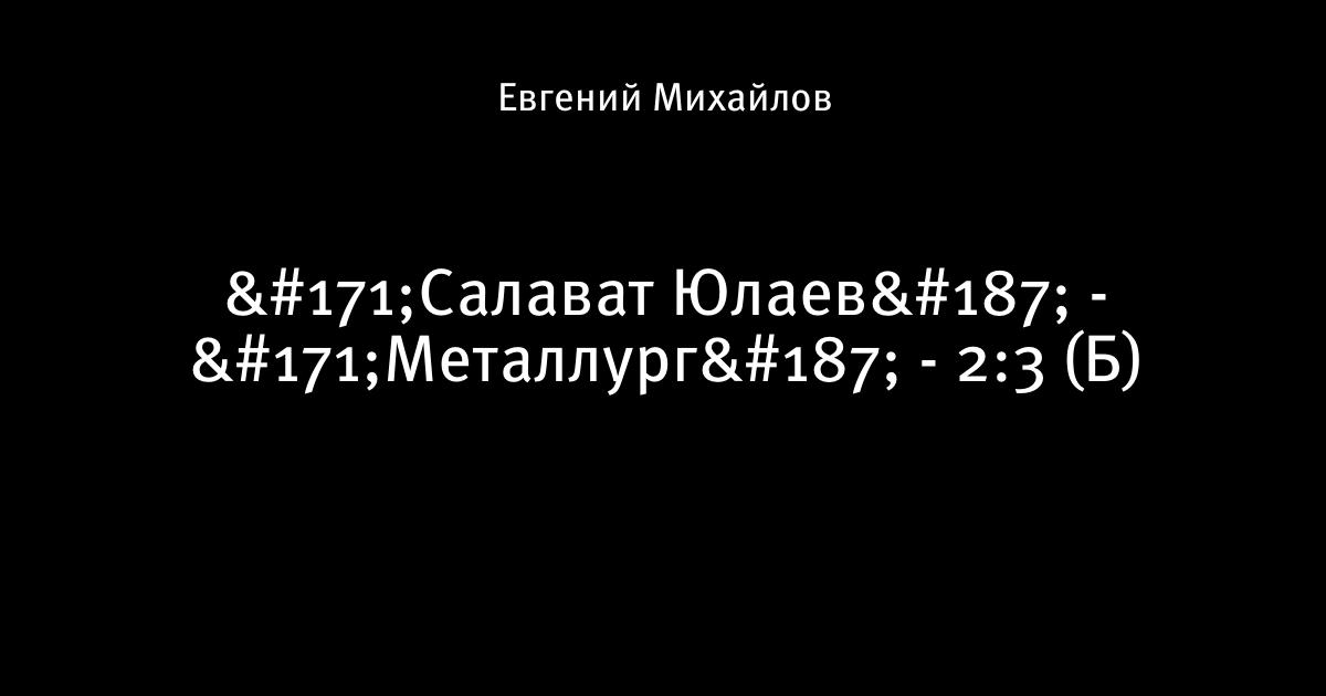«Салават Юлаев» - «Металлург» - 2:3 (0:0, 1:1, 1:1, 0:0, 0:1).