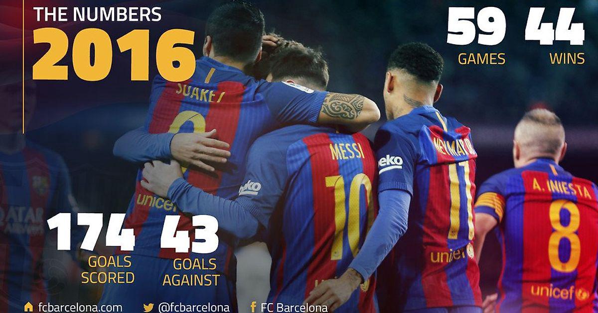 2016 год для «Барселоны»: 59 игр 44 победы 174 гола – 2.94 гола за игру