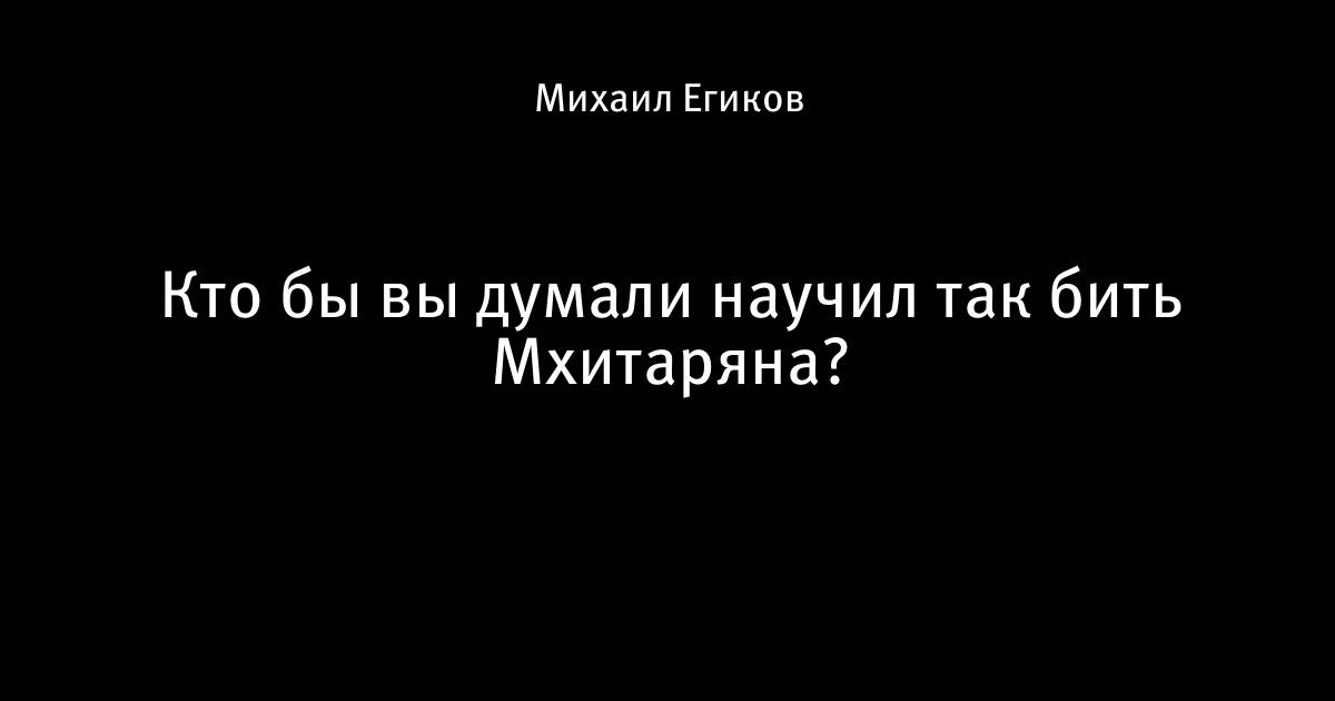 27 декабря 2016, 09:52 Кто бы вы думали научил так бить Мхитаряна? Автор Михаил Егиков Этот пост опубликован в блоге на Трибуне Sports.ru. Присоединяйтесь к крупнейшему сообществу спортивных болельщиков! Другие посты блога Мы United
