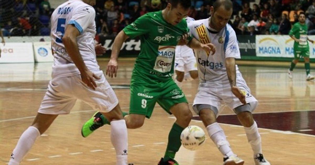 В этом противостоянии вратаря гостей против полевых игроков «Магны» сохранялся хрупкий паритет, который был разрушен в последней пятиминутке первого тайма - хозяева разыграли аут: японский легионер наваррцев Томоки Йошикава выполнил «черпак» на противоположный флаг, где никем не прикрытый Араса нанёс плотный удар в створ ворот гостей. Прието с ударом справился, отразив мяч перед собой, где Роберто Мартил оказался самым расторопным на добивании. 2-0 – вторая пробоине в лодке под названием «Катгас Энергия», и местная торсида ликует от вострога!