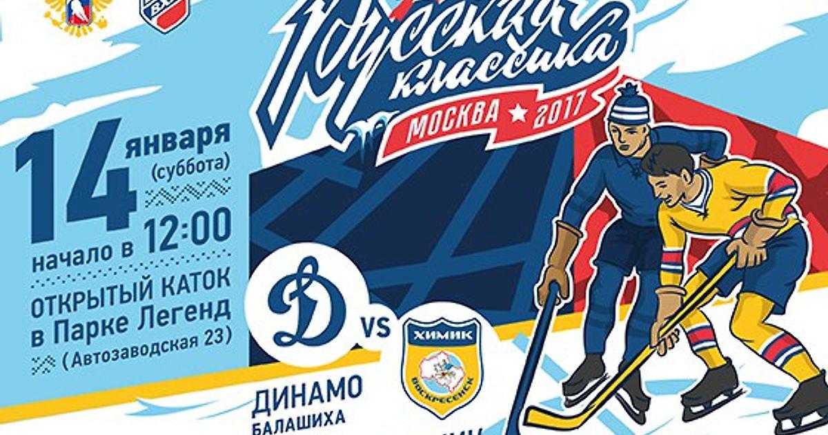 "В логотипе «Русской Классики» представлены элементы фирменного знака ВХЛ, советского машиностроения и герба Москвы. Место и действие - в прошлом завод ЗИЛ, а в настоящем - Ледовый дворец Парка Легенд с открытой хоккейной коробкой на фоне заснеженного небосвода. Возрожденная мода на плакатный советский шрифт усиливает принадлежность к классике отечественной школы хоккея. Одним из главных элементов логотипа является традиционный символ русской зимы – снегирь",- именно так гласит официальная афиша в группе Химика ВКонтакте.