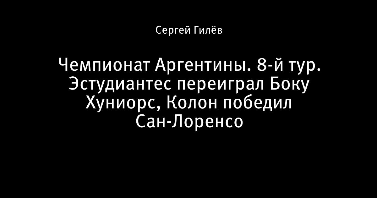 26 сентября 2010, 20:58 Чемпионат Аргентины. 8-й тур. Эстудиантес переиграл Боку Хуниорс, Колон победил Сан-Лоренсо Велес Сарсфилд Олимпо 3:0 Индепендьенте Химнасия Ла-Плата 1:0 Архентинос Хуниорс Банфилд 1:0 Эстудиантес Бока Хуниорс 1:0 Ланус Олл Бойз 1:0 Колон Сан-Лоренсо 2:0 Арсенал Саранди Ньюэллс Олд Бойз Видео и трансляции Уракан Годой Видео и трансляции Тигре Расинг Видео и трансляции Ривер Плейт Кильмес Видео и трансляции Автор Сергей Гилёв Этот пост опубликован в блоге на Трибуне Sports.ru. Присоединяйтесь к крупнейшему сообществу спортивных болельщиков! Другие посты блога Разборки в олимпийском Париже