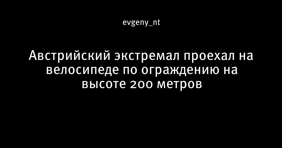 Австрийский экстремал проехал на велосипеде по ограждению на высоте 200 метров