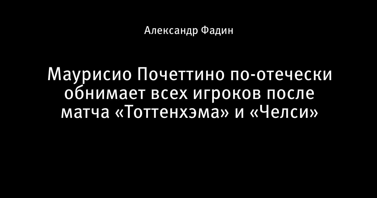 5 января 2017, 21:57 Маурисио Почеттино по-отечески обнимает всех игроков после матча «Тоттенхэма» и «Челси» «Шпоры» выиграли 2-0. Автор Александр Фадин Тоттенхэм Маурисио Почеттино Челси