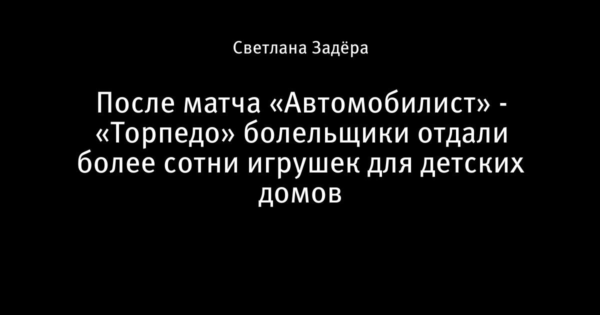 После матча «Автомобилист» - «Торпедо» зрители выбросили на лед сотни мягких игрушек, которые клуб обещает передать в детские дома, а средства, вырученные от продажи плюшевых медведей, будут потрачены на замену дверей в Кочневском детском доме.