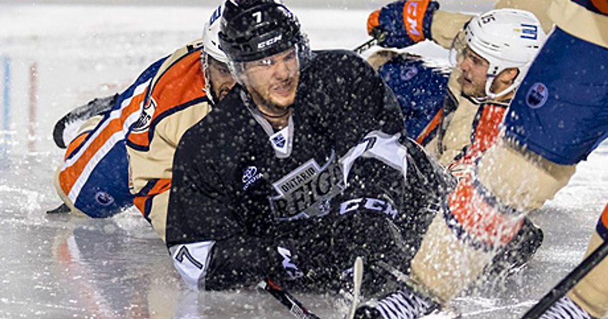Такое нечасто увидишь. Американская хоккейная лига провела свой матч на открытом воздухе и сумела переплюнуть по оригинальности идеи даже НХЛ. Матч регулярного чемпионата между «Бейкерсфилд Кондос» (фарм-клуб «Эдмонтона») и «Онтарио Рейн» (фарм-клуб «Лос-Анджелеса») состоялся на Memorial Stadium в Бейкерсфилде, штат Калифорния. Даже в январе там нечасто случается отрицательная температура, зато дожди идут примерно через день. В итоге матч проходил при +15 – неудивительно, что в итоге получилось такое необычное зрелище, свидетелями которого стали 12330 зрителей.