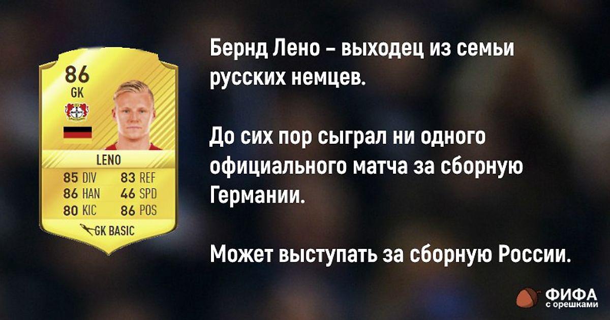 8 января 2017, 21:58 Еще один вратарь, которого можно натурализовать в сборную России Это PES 2014 и один из игроков АПЛ. Сможете отгадать, кто? Автор СуперМарио Этот пост опубликован в блоге на Трибуне Sports.ru. Присоединяйтесь к крупнейшему сообществу спортивных болельщиков! Другие посты блога Жухлые Футбольные Факты | ЖУФФ Сборная России по футболу Бернд Лено