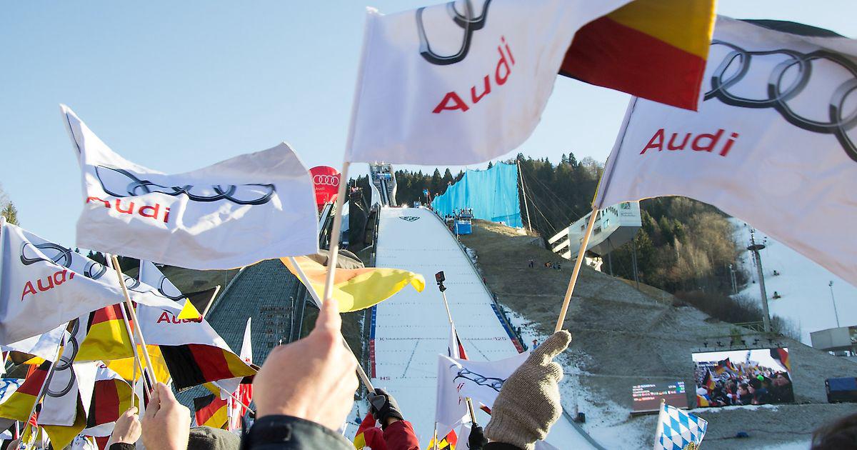 Благодаря спонсорским флагам немцы смогли создать домашнюю обстановку для своих прыгунов