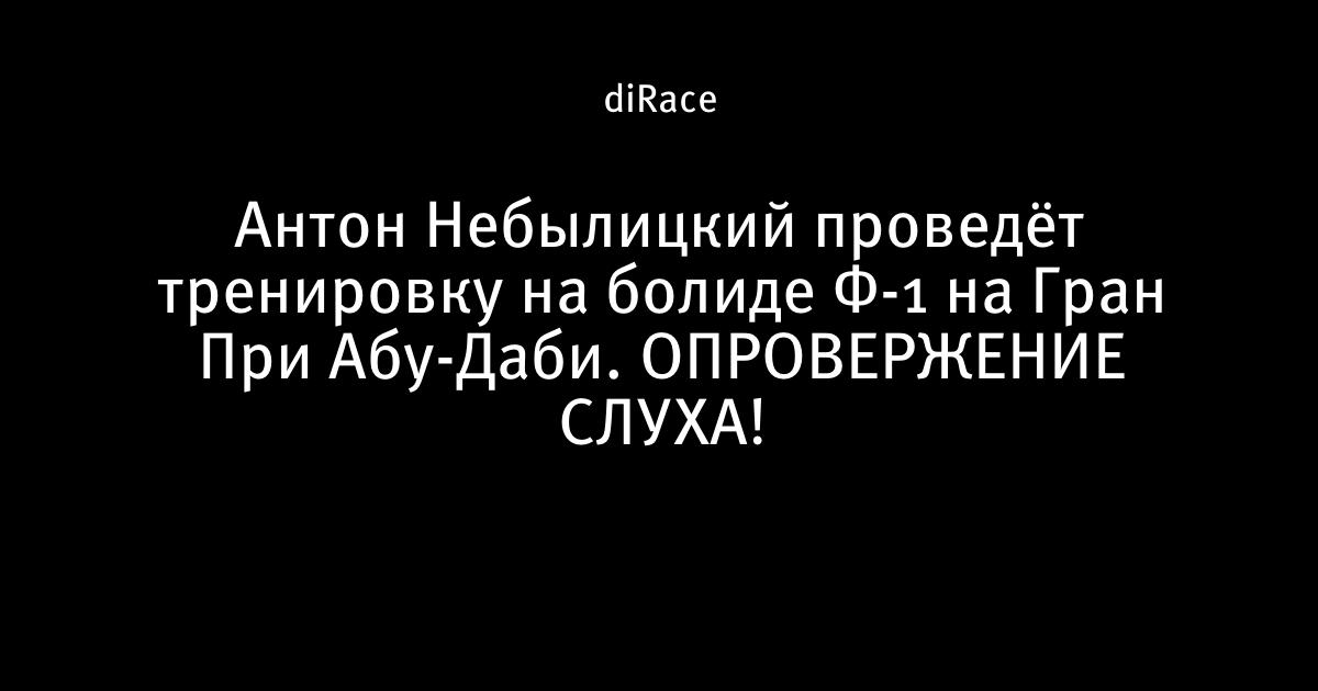 Антон Небылицкий проведёт тренировку на болиде Ф-1 на Гран При Абу-Даби. ОПРОВЕРЖЕНИЕ СЛУХА!