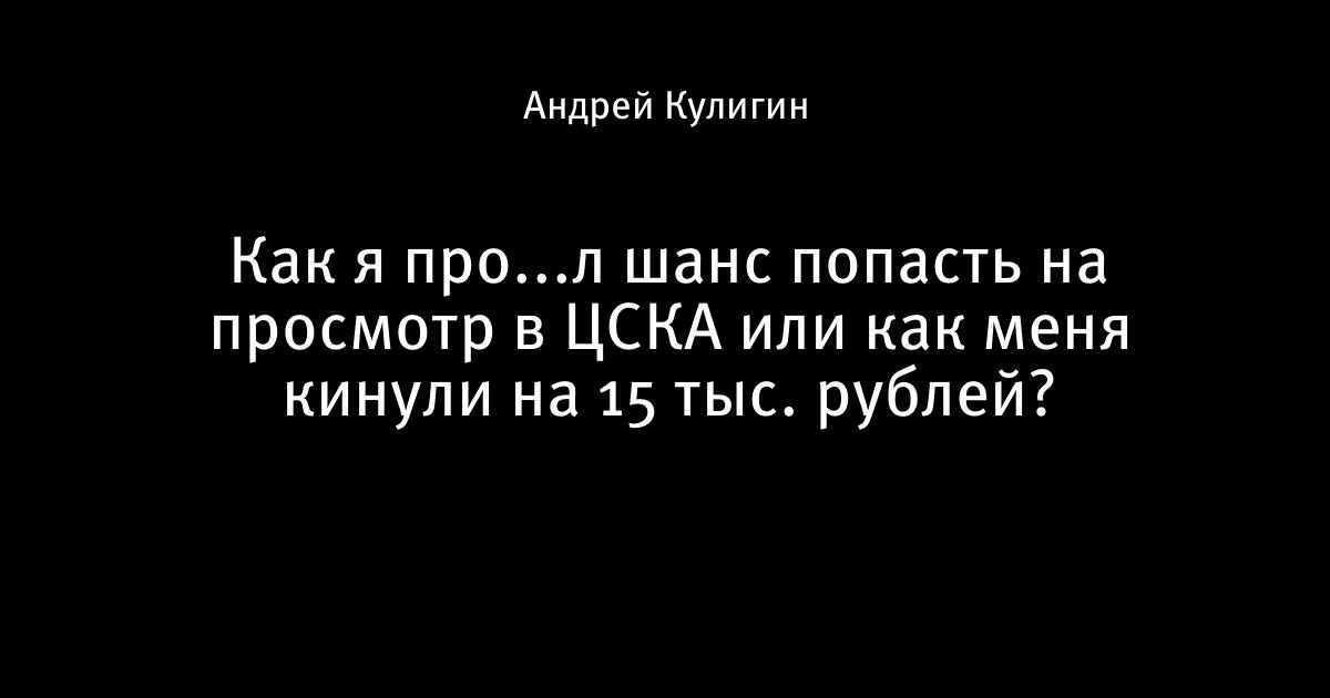 Как я про...л шанс попасть на просмотр в ЦСКА или как меня кинули на 15 тыс. рублей?