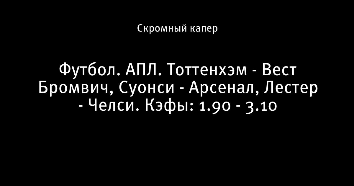 Футбол. АПЛ. Тоттенхэм - Вест Бромвич, Суонси - Арсенал, Лестер - Челси. Кэфы: 1.90 - 3.10