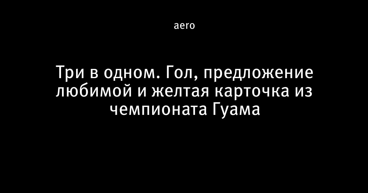 14 января 2017, 22:40 Три в одном. Гол, предложение любимой и желтая карточка из чемпионата Гуама Автор aero Этот пост опубликован в блоге на Трибуне Sports.ru. Присоединяйтесь к крупнейшему сообществу спортивных болельщиков! Другие посты блога Вы это видели?
