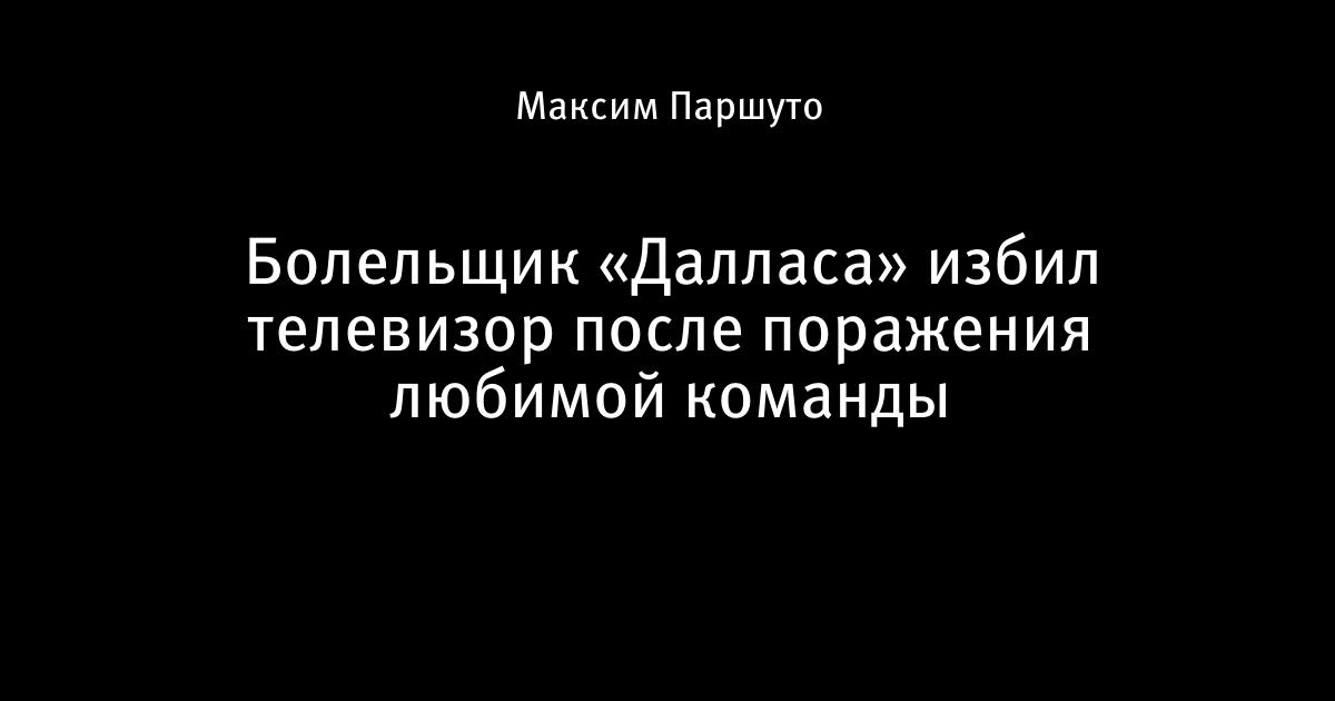 17 января 2017, 13:00 Болельщик «Далласа» избил телевизор после поражения любимой команды Автор Максим Паршуто Этот пост опубликован в блоге на Трибуне Sports.ru. Присоединяйтесь к крупнейшему сообществу спортивных болельщиков! Другие посты блога Вы это видели? Даллас