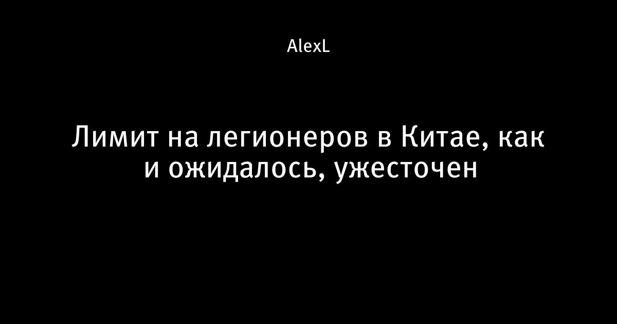 Лимит на легионеров в Китае, как и ожидалось, ужесточен