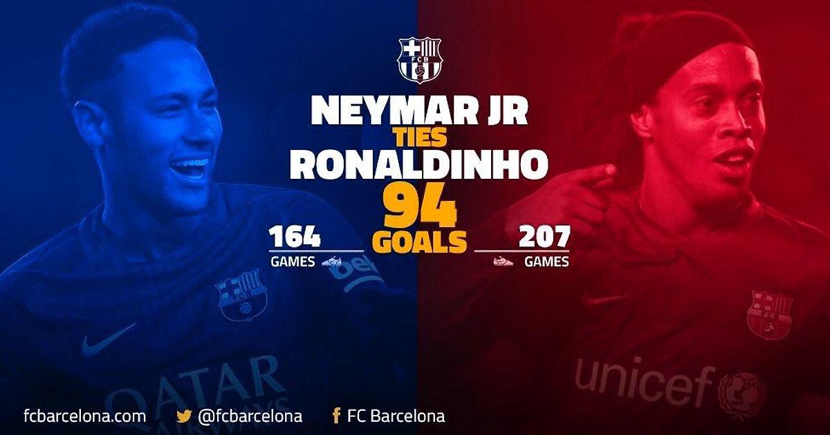 Неймар сровнялся с Роналдиньо по количеству голов за Барселону!