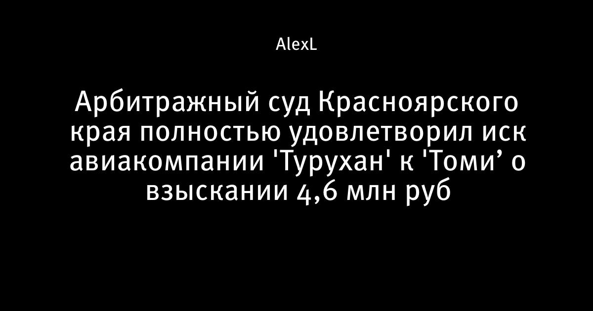 Арбитражный суд Красноярского края полностью удовлетворил иск авиакомпании 'Турухан' к 'Томи’ о взыскании 4,6 млн руб