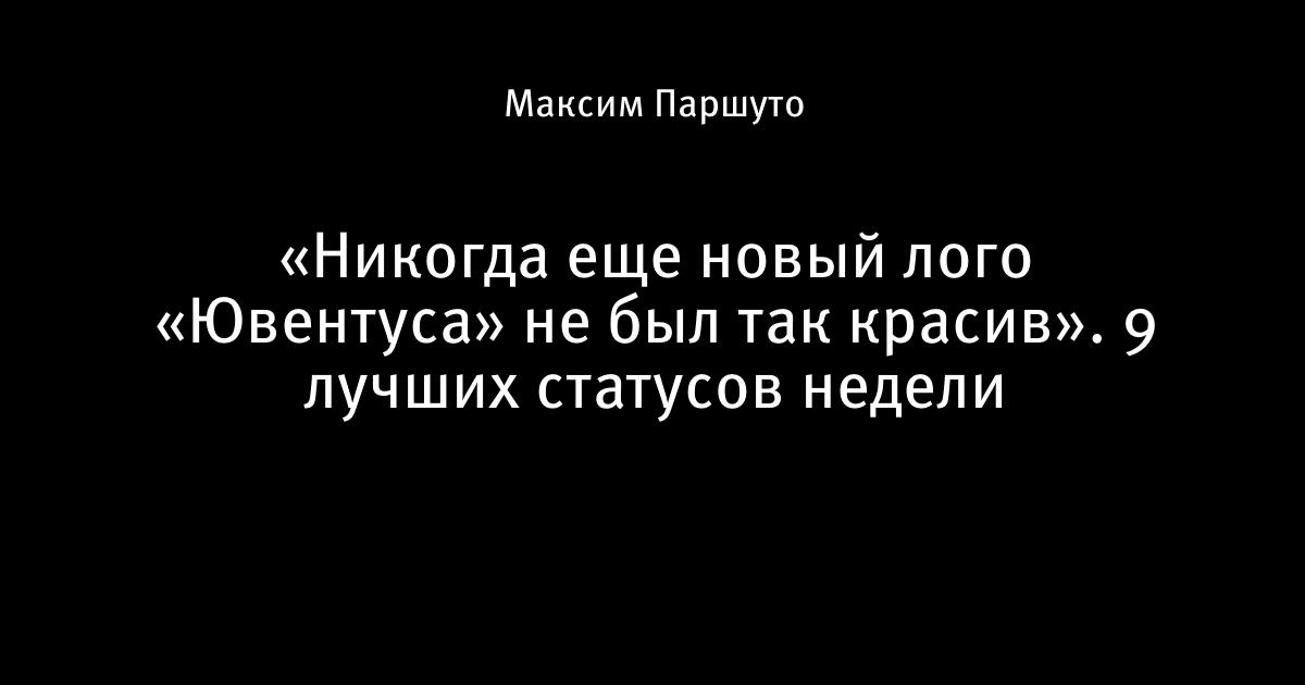 24 января 2017, 14:18 «Никогда еще новый лого «Ювентуса» не был так красив». 9 лучших статусов недели Продолжаем уже традиционную рубрику. Алексей Меренков DoMeR Загружаю... Финт Редондо Иван Тянтов Carlitto Ольга Богданова Загружаю... I_love_JU ivan____ Вадим Лукомский «Когда стану президентом Sports.ru, верну возможность ставить много минусов». 9 лучших статусов недели Автор Максим Паршуто Этот пост опубликован в блоге на Трибуне Sports.ru. Присоединяйтесь к крупнейшему сообществу спортивных болельщиков! Другие посты блога Трибуна Конкурс Спортс