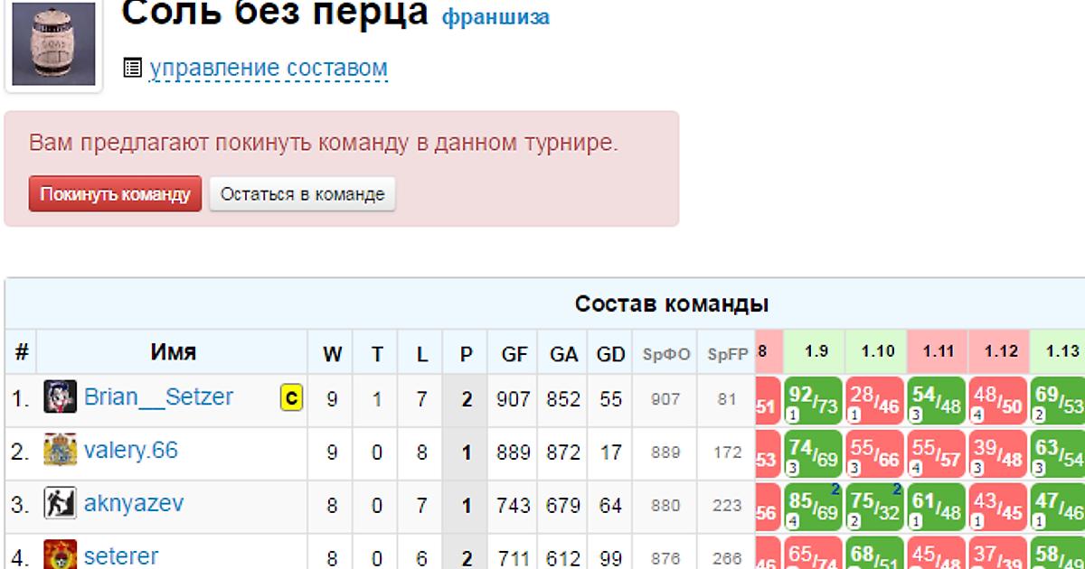 1. Сразу отмечу, что за сезон пользователь может участвовать только в 2-х франшизах, после чего будет заблокирован для переходов. При этом после выхода из франшизы "по обоюдному согласию" игрок сразу может встпуить в другую франшизу.