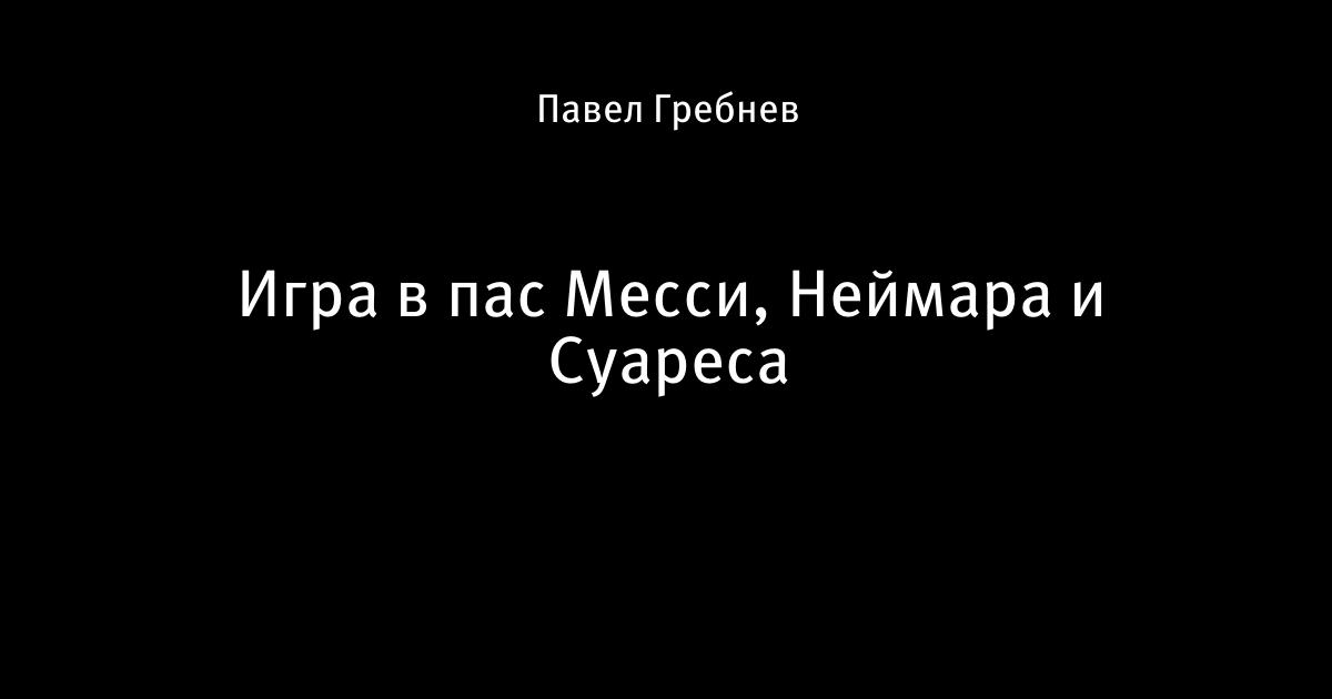 29 января 2017, 16:31 Игра в пас Месси, Неймара и Суареса Автор Павел Гребнев Этот пост опубликован в блоге на Трибуне Sports.ru. Присоединяйтесь к крупнейшему сообществу спортивных болельщиков! Другие посты блога Эстетика футбола Неймар Лионель Месси Барселона Луис Суарес Ла Лига