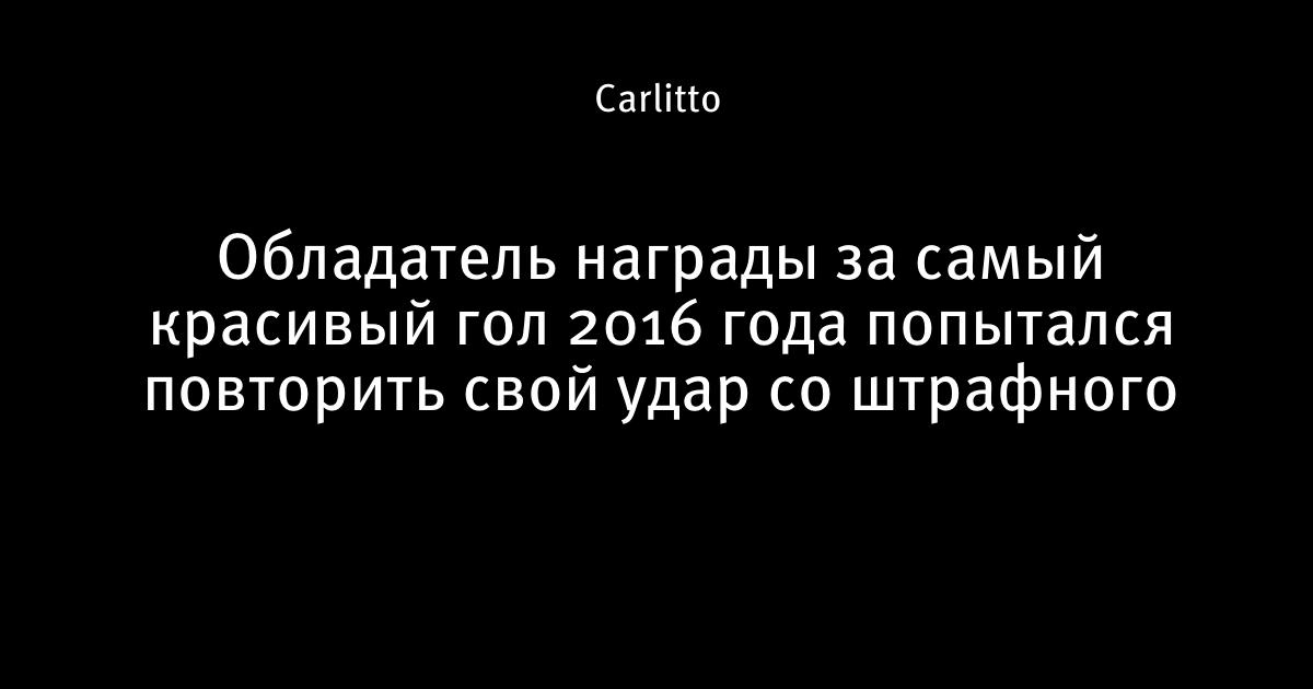 30 января 2017, 18:27 Обладатель награды за самый красивый гол 2016 года попытался повторить свой удар со штрафного Автор Carlitto Этот пост опубликован в блоге на Трибуне Sports.ru. Присоединяйтесь к крупнейшему сообществу спортивных болельщиков! Другие посты блога Телевизор 3.0 высшая лига Малайзия Фаиз Субри