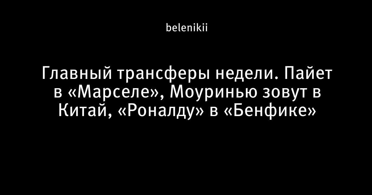 Главный трансферы недели. Пайет в «Марселе», Моуринью зовут в Китай, «Роналду» в «Бенфике»