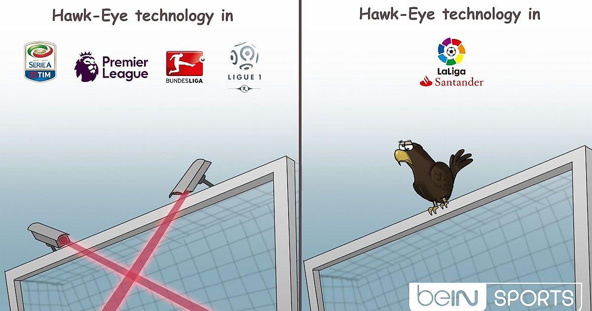 Именно так выглядит технология определения голов "Hawk-Eye" в топ-5 лигах Европы и, если дословно воспринимать название технологии, в Ла Лиге у ястреба явное косоглазие.