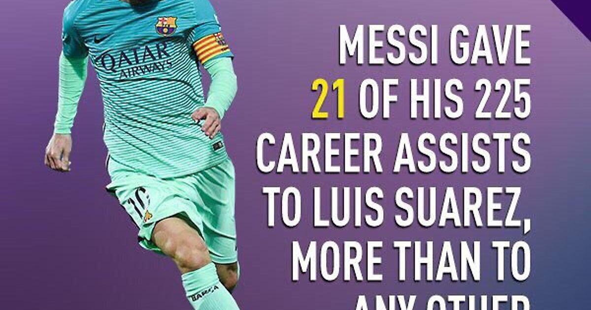 Из 225 голевых передач в карьере 21 Месси отдал на Луиса Суареса. Это больше, чем на любого другого игрока.