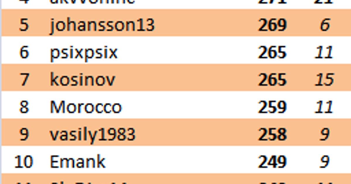 В Испании отметим тандем vasily1983 (2-я неделю подряд) и Emank (по 27 очков)