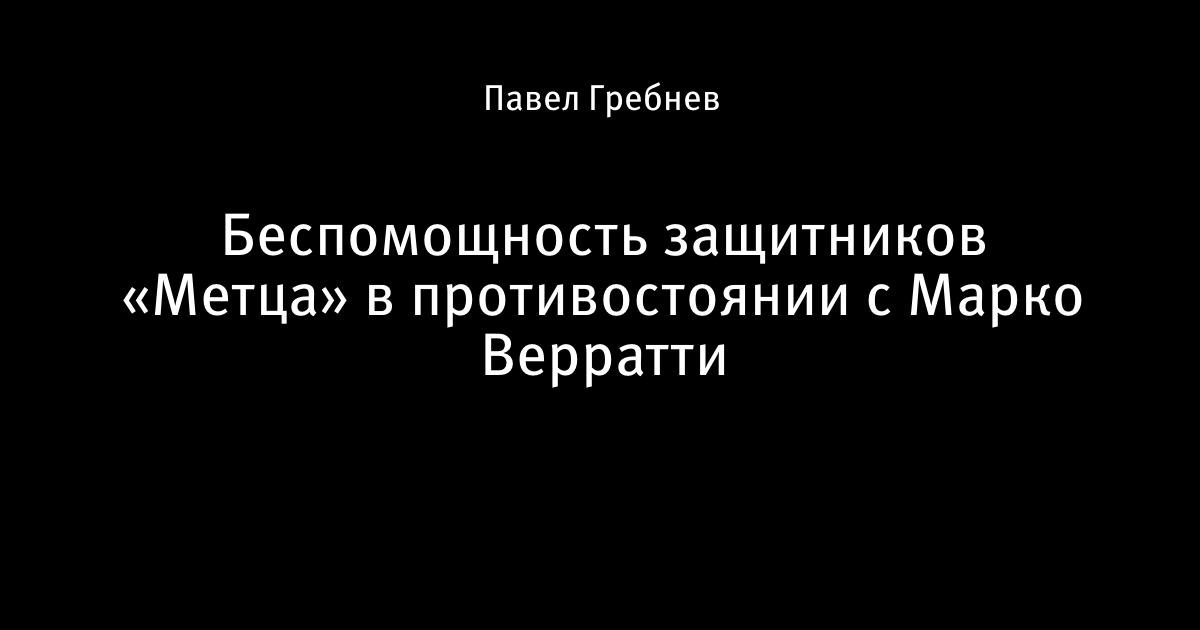 1 февраля 2017, 18:13 Беспомощность защитников «Метца» в противостоянии с Марко Верратти Автор Павел Гребнев Этот пост опубликован в блоге на Трибуне Sports.ru. Присоединяйтесь к крупнейшему сообществу спортивных болельщиков! Другие посты блога Эстетика футбола Марко Верратти Мец ПСЖ Кубок лиги Франция
