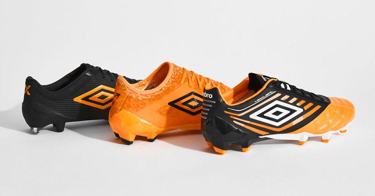Umbro начал февраль с яркой оранжевой линейки бутс. Яркий цвет покрыл все основные модели, включая флагманские бутсы Velocita третьего поколения.
