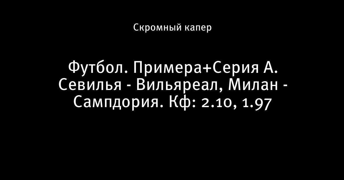 Футбол. Примера+Серия А. Севилья - Вильяреал, Милан - Сампдория. Кф: 2.10, 1.97
