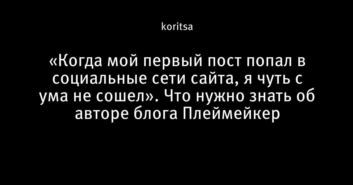 «Когда мой первый пост попал в социальные сети сайта, я чуть с ума не сошел». Что нужно знать об авторе блога Плеймейкер