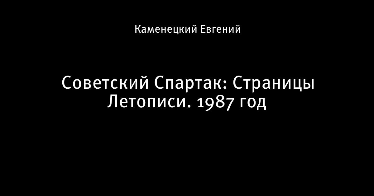 Советский Спартак: Страницы Летописи. 1987 год ...