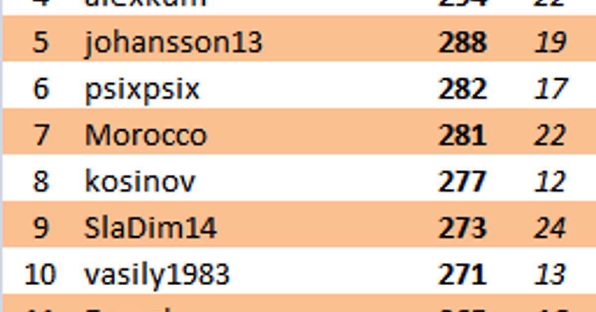 SlaDim14 и johansson13 стали лучшими игроками недели (по 112 очков)