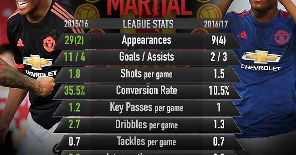 Сравнительная статистика Антони Марсьяля в этом и прошлом сезоне