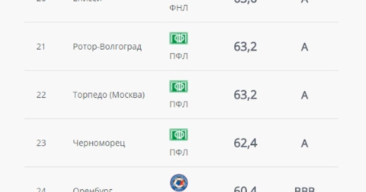 «Зенит» - 1-й, ЦСКА - 2-й, «Локомотив» - 3-й, «Торпедо» на 22-м месте