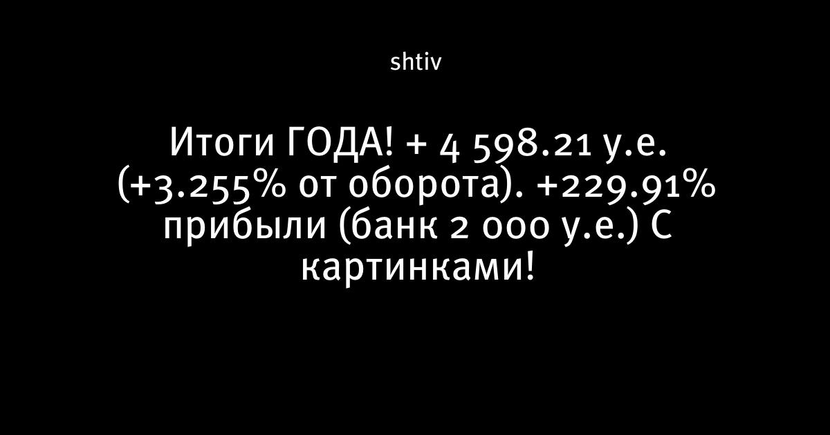 Итоги ГОДА! + 4 598.21 у.е. (+3.255% от оборота). +229.91% прибыли (банк 2 000 у.е.) С картинками!