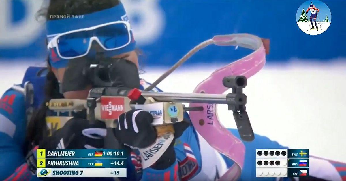 Татьяна Акимова упала на подходе к рубежу , сломав палку и повредив винтовку.На рубеже Акимова допустила 3 промаха и зашла на штрафной круг.