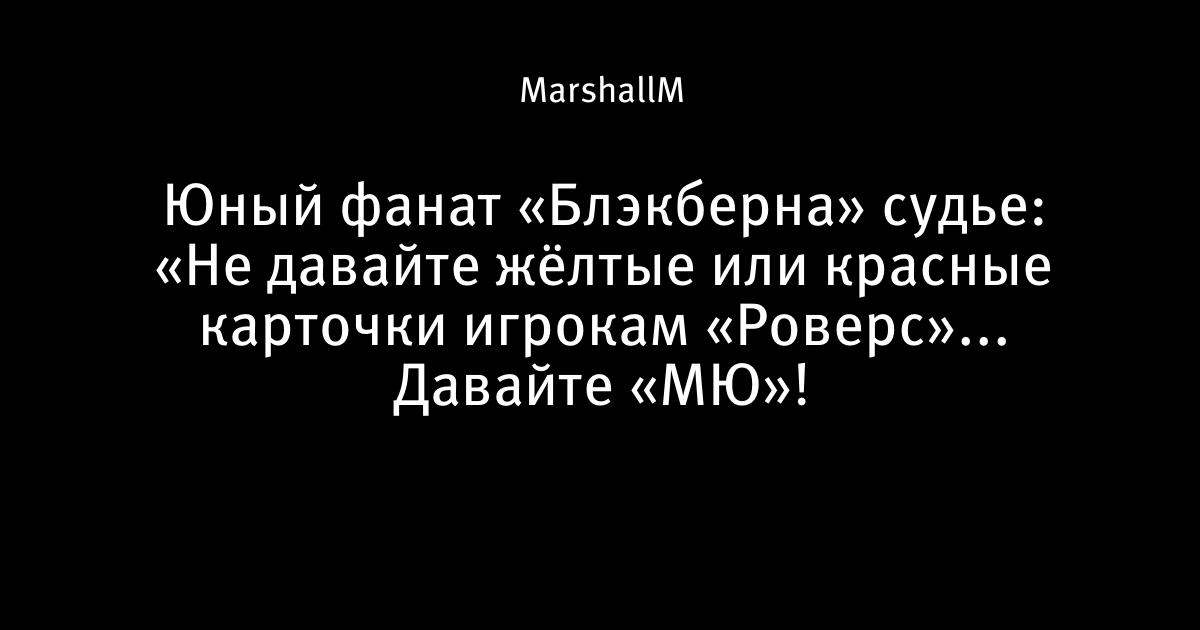 20 февраля 2017, 19:34 Юный фанат «Блэкберна» судье: «Не давайте жёлтые или красные карточки игрокам «Роверс»... Давайте «МЮ»! Автор MarshallM Этот пост опубликован в блоге на Трибуне Sports.ru. Присоединяйтесь к крупнейшему сообществу спортивных болельщиков! Другие посты блога Вы это видели? Блэкберн Манчестер Юнайтед Кубок Англии судьи Жозе Моуринью