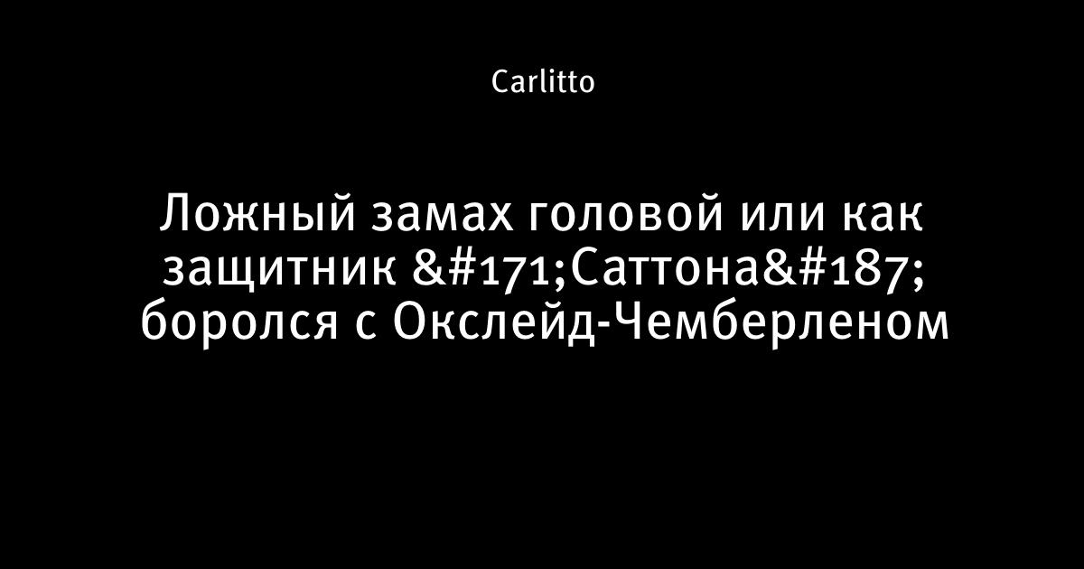 21 февраля 2017, 12:06 Ложный замах головой или как защитник «Саттона» боролся с Окслейд-Чемберленом Автор Carlitto Этот пост опубликован в блоге на Трибуне Sports.ru. Присоединяйтесь к крупнейшему сообществу спортивных болельщиков! Другие посты блога Телевизор 3.0 Алекс Окслейд-Чемберлен Саттон Юнайтед Арсенал Кубок Англии