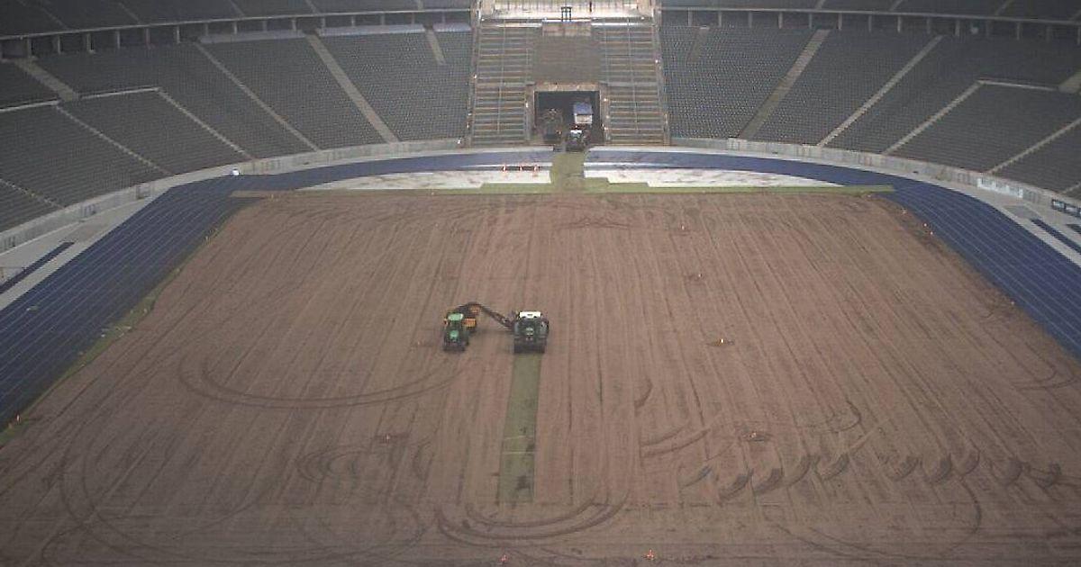 В воскресенье на арене "Герты" начался процесс замены газона. В среду процесс должен будет завершиться.