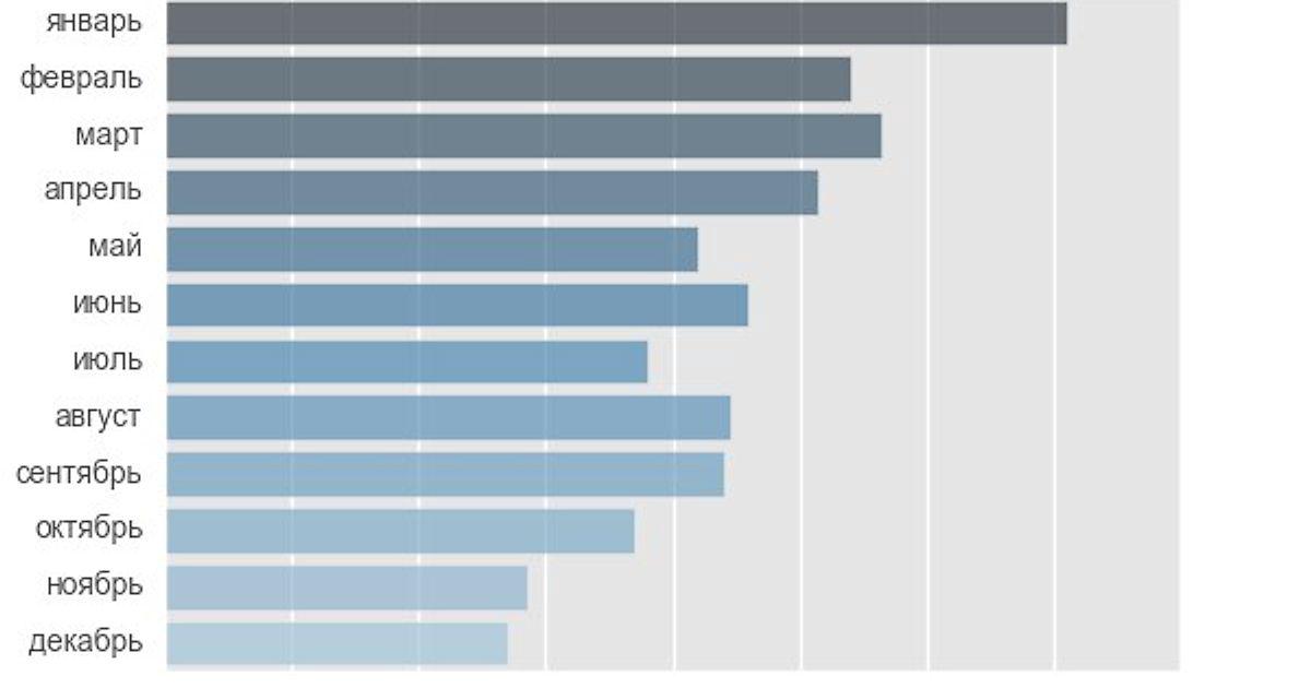 Ни у одного месяца нет ярко выделяющихся значений, что ожидаемо. Хотя сентябрь и октябрь довольно интересно смотрятся.