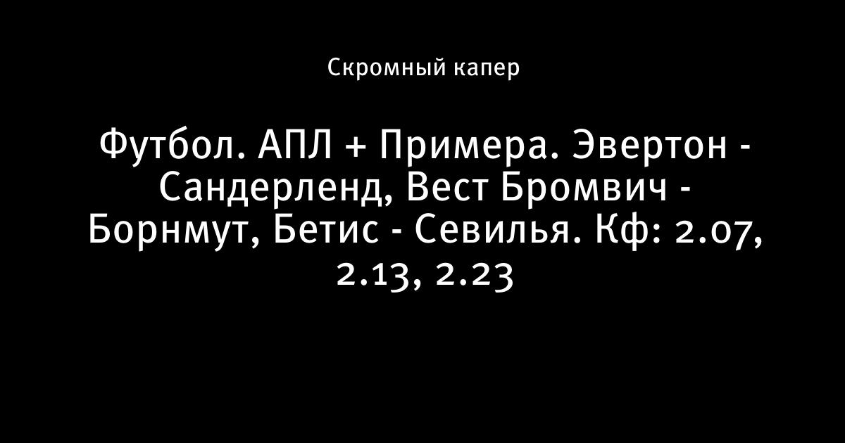 Футбол. АПЛ + Примера. Эвертон - Сандерленд, Вест Бромвич - Борнмут, Бетис - Севилья. Кф: 2.07, 2.13, 2.23