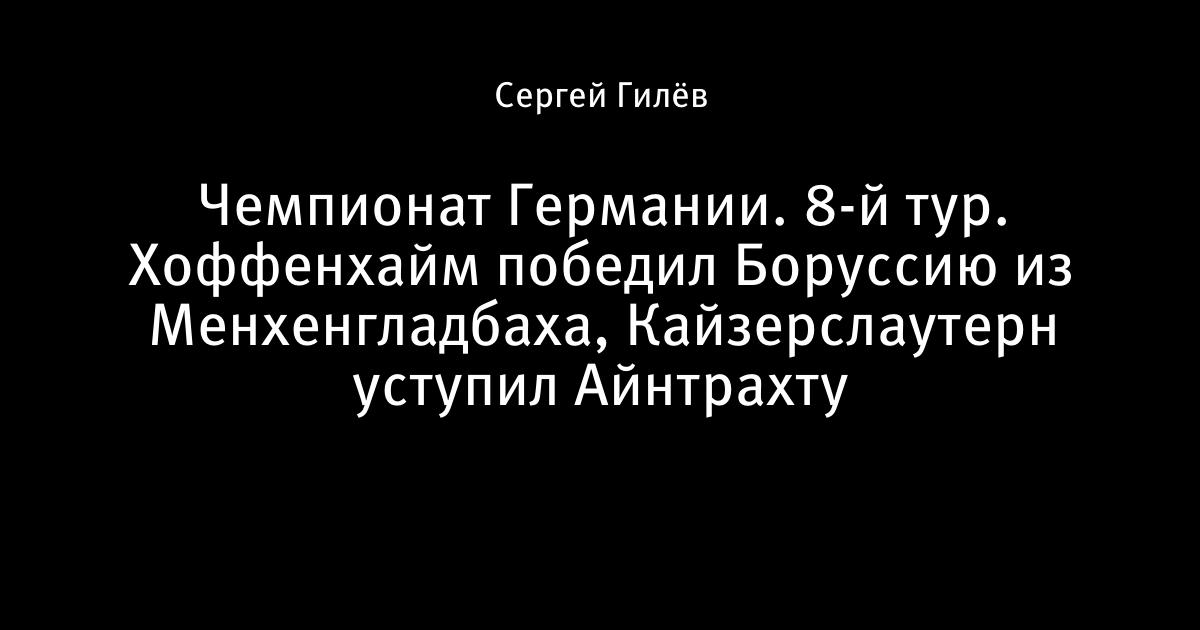 Чемпионат Германии. 8-й тур. Хоффенхайм победил Боруссию из Менхенгладбаха, Кайзерслаутерн уступил Айнтрахту