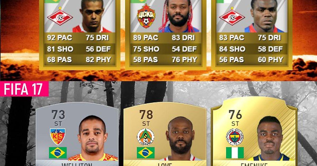 3 марта 2017, 11:50 Вагнер Лав, Эменике, Веллитон в FIFA 12 и FIFA 17. Крах легенд Великое трио. Подписывайтесь на наш ВК паблик про FIFA 17. Там еще больше дряни: 🔥 Рейтинг Роналдиньо в FIFA 10. Последний раз крутой 🔥 Как Бориса Ротенберга оценивают в FIFA Автор СуперМарио Этот пост опубликован в блоге на Трибуне Sports.ru. Присоединяйтесь к крупнейшему сообществу спортивных болельщиков! Другие посты блога Жухлые Футбольные Факты | ЖУФФ футбольные симуляторы Вагнер Лав Эммануэль Эменике Веллитон ЦСКА Спартак