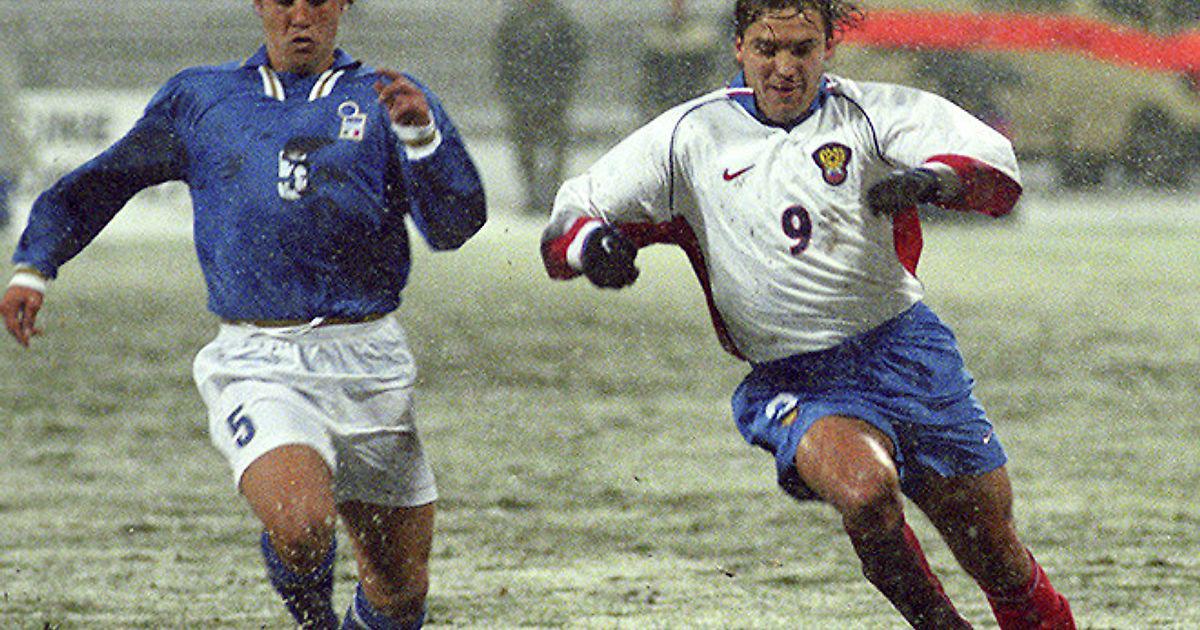 1997 г. Решающий стыковой матч. РОССИЯ-ИТАЛИЯ (1:1), умышленная травма, нанесённая итальянцами Вик.Онопко (и "незамеченная" судьями ...), заснеженное поле и ... неравная (пусть и мужественная!) борьба далеко не оптимального состава нашей сборной!.., словно героический крейсер "Варяг", уходящая со Сцены ...