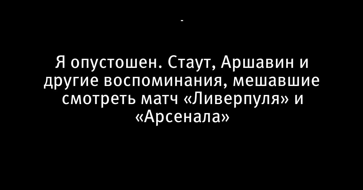 Я опустошен. Стаут, Аршавин и другие воспоминания, мешавшие смотреть матч «Ливерпуля» и «Арсенала»
