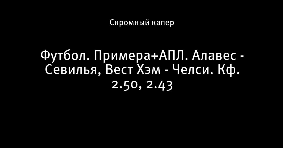 Футбол. Примера+АПЛ. Алавес - Севилья, Вест Хэм - Челси. Кф. 2.50, 2.43
